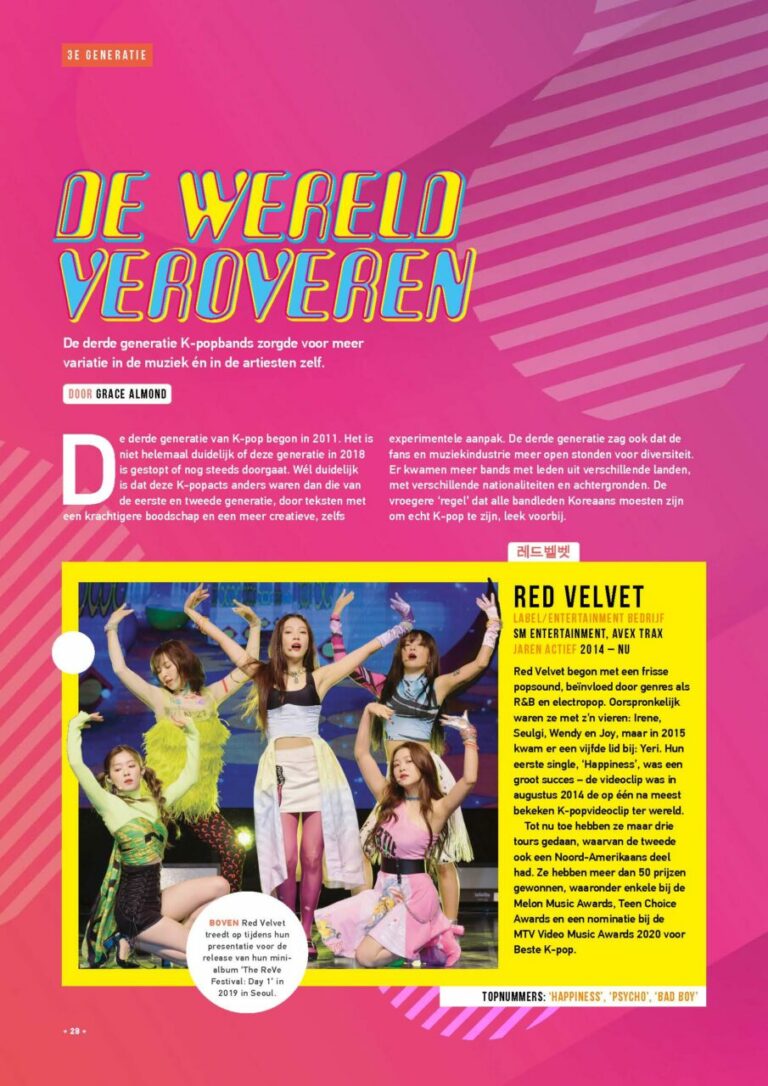 K-pop, de superpopulaire muziek uit Zuid-Korea, is heel snel de wereld rond gegaan. Misschien heb je er al van gehoord, maar weet je nog niet precies wat het is. In deel 1 van Het Verhaal van K-pop legden we het je helemaal uit. Nu gaat het verhaal door! In dit magazine (deel 2!) komen de 3e en de 4e generatie artiesten aan bod, en oh ja: ook de veelbelovende talenten van de 5e generatie! En we geven je een lijst van maar liefst 35 legendarische albums (volgens ons) die je zeker moet luisteren. Of je nu al jaren fan bent of gewoon nieuwsgierig, dit is hét magazine voor jou.
